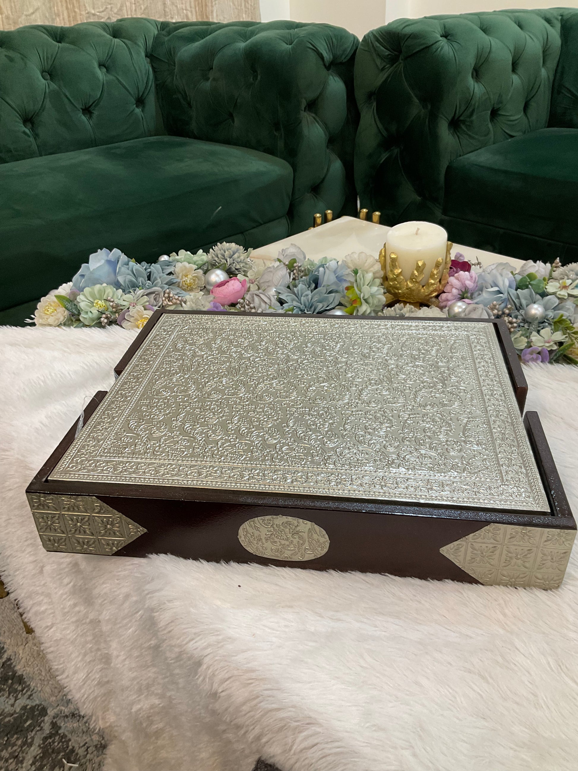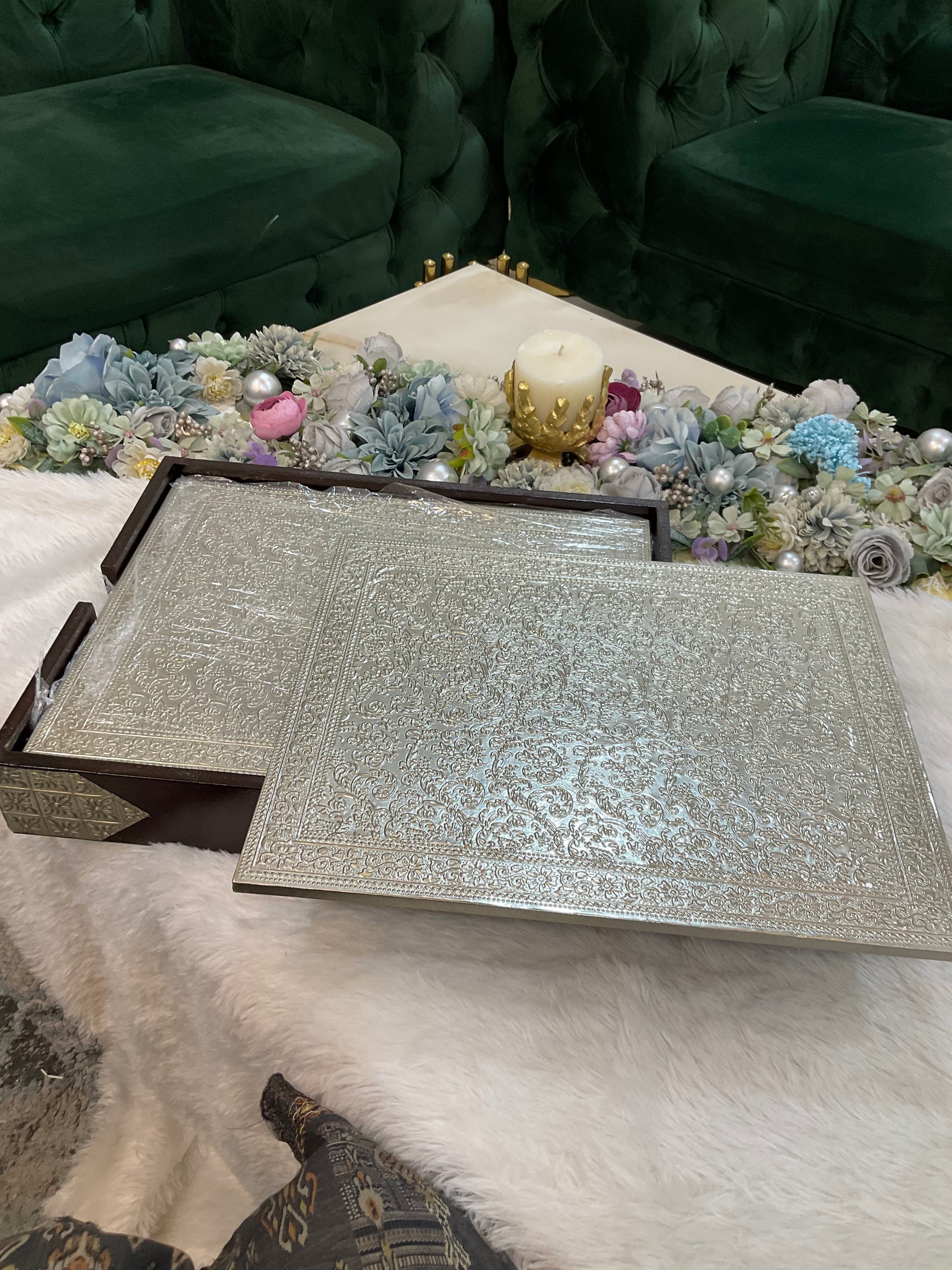 Made from high-quality German silver, they offer a perfect blend of durability, shine, and timeless appeal. The detailed craftsmanship enhances table aesthetics while also protecting your table surface from heat, spills, and scratches.