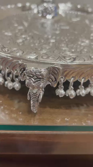 German Silver Elephant Hand Engraved Swastik Puja Thali Set