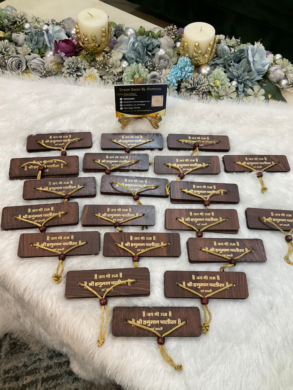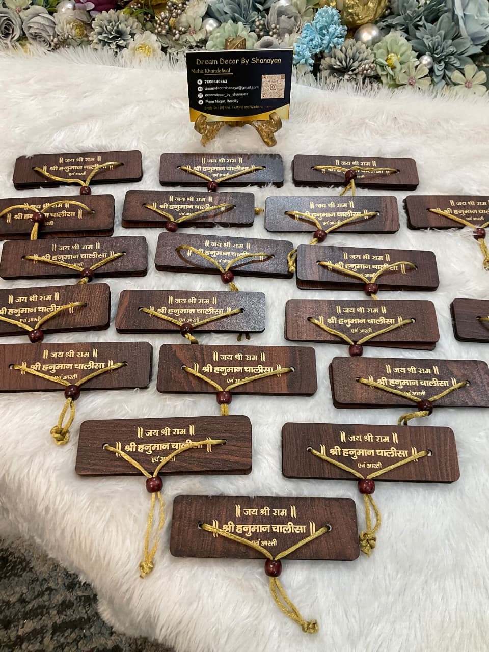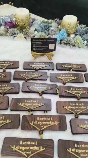 Each plaque is thoughtfully designed with a traditional thread and wooden bead detailing, making it perfect for your home temple, car dashboard, or gifting during religious occasions.