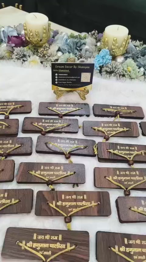Made with premium quality wood and engraved in golden script, this elegant piece carries the sacred inscription “|| जय श्री राम || श्री हनुमान चालीसा”.