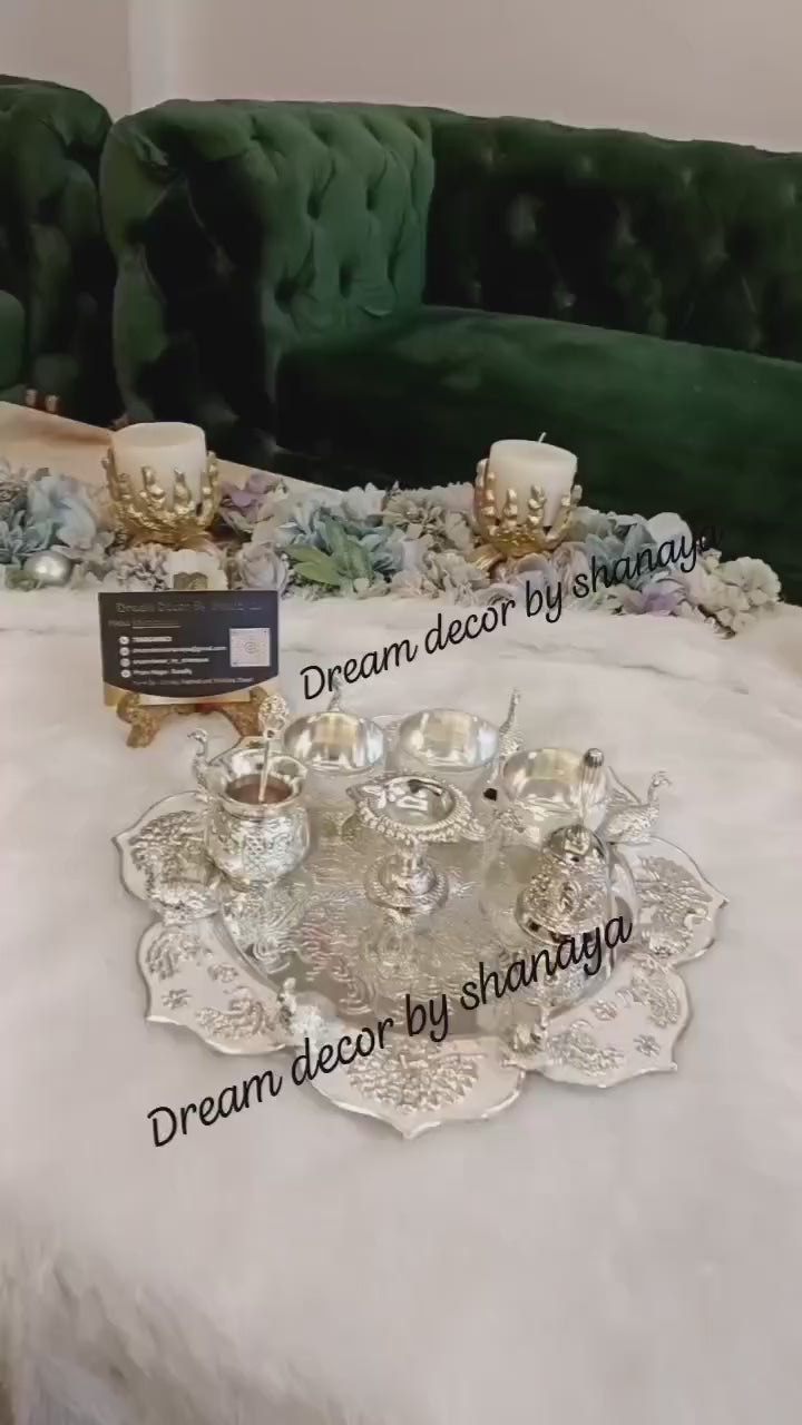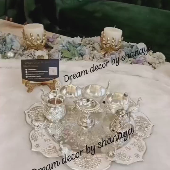 Elevate your festive rituals with this premium Imported Silver-Plated Puja Thal Set, crafted with intricate detailing and a luxurious finish. Perfect for gifting, home temples, and all auspicious occasions.