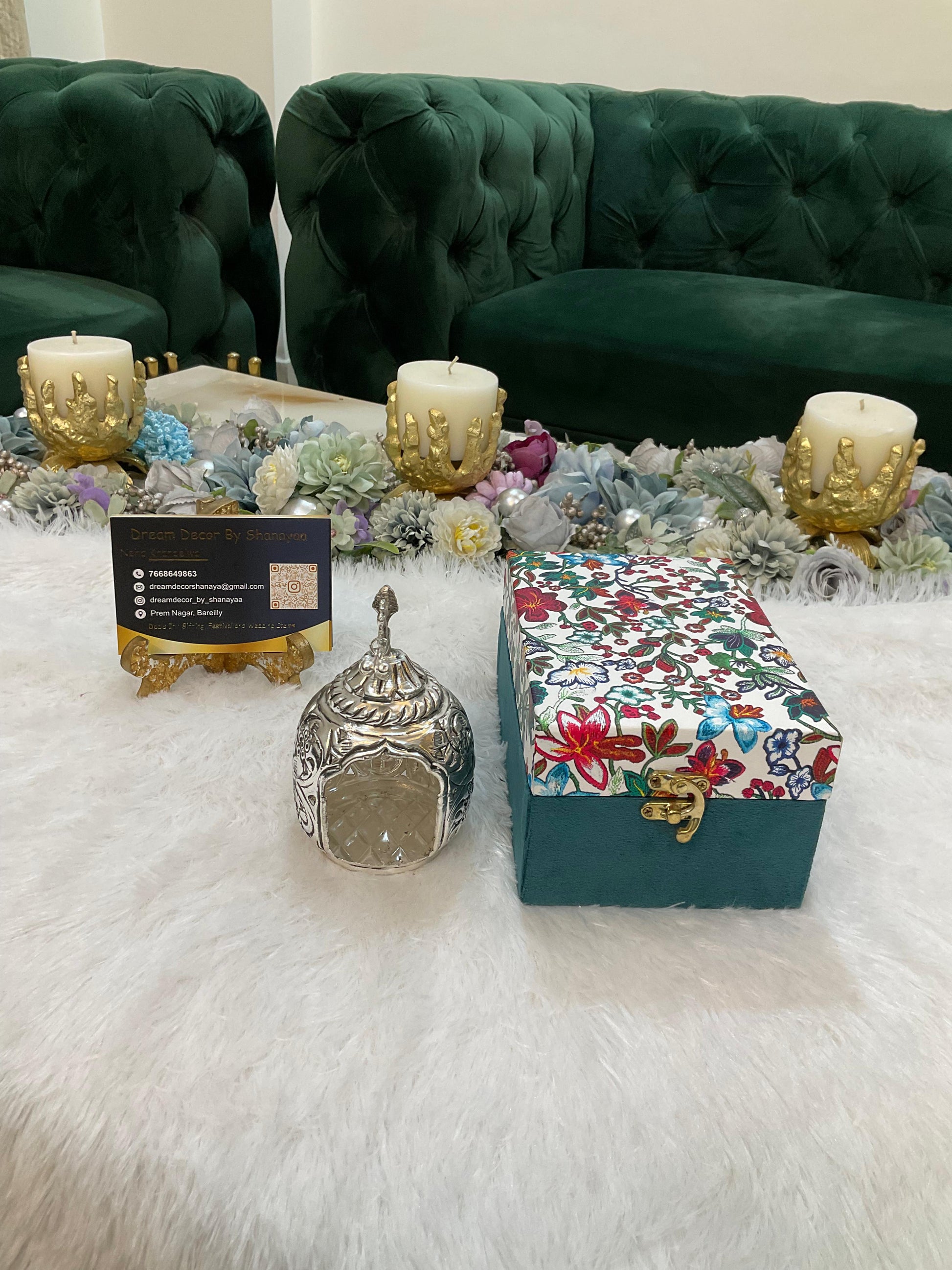 - Premium silver-plated metal with fine carving work