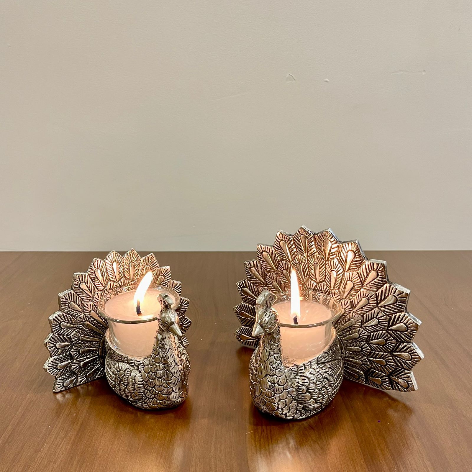 Silver Plated Peacock with Glass Tealight Candle Holder